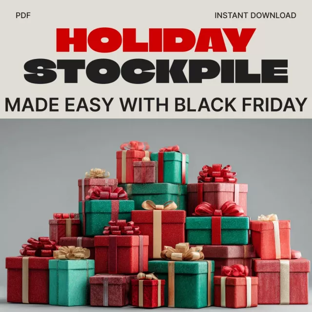 Make this the year you outsmart the sales and truly enjoy your holidays. Download your copy of Holiday Stockpile Made Easy with Black Friday now and start learning how to stock up for holidays using Black Friday deals like a pro. Your stress-free, savings-filled holiday season starts here!